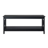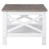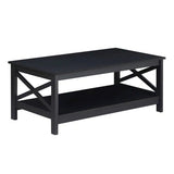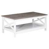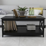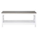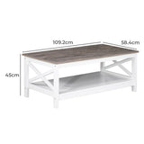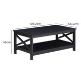 Features: Materials: MDF with laminated finish tabletop, particleboard frame Includes: 1 x coffee table Simple design with 2-tone finish With shelf for storage The X-shaped cross brace on each side provides extra support & simplicity