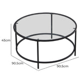 Features: Materials: powder-coated steel frame & legs, tempered glass tabletop Includes: 1 x coffee table, 1 x set of assembly parts, 1 x assembly manual Made from high-quality tempered glass & sturdy powder-coated steel frame to ensure stability & durability Versatile & practical addition to your space Perfect height for sofa & chair, making it ideal for the living room, office or apartment Smooth surface & round corner design that is safe for your family Minimal assembly required, saving you time