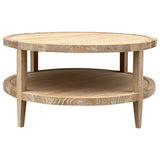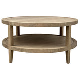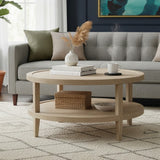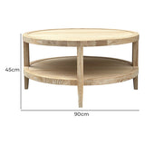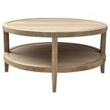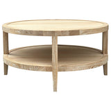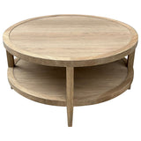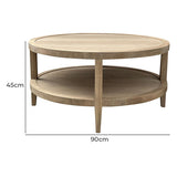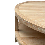 Features Table top Shape: Round Frame Material: Manufactured Wood; Solid Wood Tabletop Material: Manufactured WoodTabletop Material Details: Plywood with oak wood veneer finish Primary Colour: Light Wood Open Storage: Yes Style: Traditional; Luxe Painted Finish: No Box Contents: 1 x coffee table Care Instructions: Do not place hot items directly on surface; use coasters under beverages to prevent marks & stains; wipe with a soft, dry cloth; avoid the use of harsh chemicals or abrasive cleaning materials  Assembly Assembly Required: No  Limited warranty Product Warranty: 2 Years  Specifications Commercial Use: No  StyleThe French Round Oak Wood Coffee Table is a Traditional or Luxe style product. Traditional style furniture and decor tends to look heavy with an heirloom type quality.Common wood tones are darker shades of mahogany and walnut. Traditional style tends to feature pieces with tufted cushions and nailhead accents. You can shop for more Traditional or Luxe Coffee Tables in the Furniture section of our site.