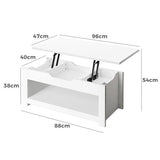 Features: Materials: E1 grade particleboard with melamine finish frame & tabletop Includes: 1 x coffee table, 1 x assembly manual, 1 x set of assembly parts Crafted from E1 grade & 1.5cm thick particleboard Improved, wear-resistant melamine finish Quality & stable gas lift Storage space under the desktop Spacious open shelf Solid construction Heavy-duty hardware