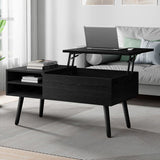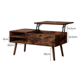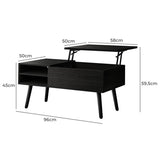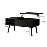Features: Materials: particleboard Includes: 1 x coffee table, 1 x assembly manual Crafted from E1 grade & 1.5cm thick particleboard Improved, wear-resistant melamine finish Quality & stable gas lift Storage space under the desktop Two open side shelf Heavy-duty hardware