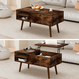 Features Table top Shape: Rectangle Frame Material: Manufactured Wood Tabletop Material: Manufactured WoodTabletop Material Details: Particleboard Lift Top: Yes Shelving: Yes Open Storage: Yes Style: Mid Century; Scandinavian Painted Finish: No Box Contents: 1 x coffee table, 1 x assembly manual, 1 x set of assembly parts Care Instructions: Do not use strong liquid cleaners Assembly Assembly Required: YesType of Assembly: FullRecommended Persons Required for Assembly: 2Assembly Details: Assembly instructions included with the product  Limited warranty Product Warranty: 1 Year  StyleThe Sheenan Lift Up Coffee Table is a Mid Century or Scandinavian style product. Scandinavian style is exemplified by clean-lines, simple, and functional. Scandinavian interiors feature bright white on floors, fabrics, and walls.While, unpainted, light wood furniture that embraces the natural grain adds much-needed warmth to spaces. Sleek, utilitarian furniture without much embellishmentis a mainstay in this minimalist style with a modern flair. You can shop for more Mid Century or Scandinavian Coffee Tables in the Furniture section of our site.