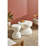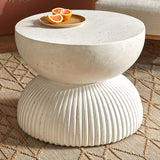 Features: Materials: polystone/polyresin, concrete, magnesium oxide/fibre; plastic foot pads Includes: 1 x outdoor coffee table Arrives fully assembled for convenience & instant styling Suitable for use next to a sofa or accent chair to hold drinks, snacks, lighting, or display greenery Polyresin has the coveted look of terrazzo Hourglass shape & fluted base texture gives it elegance Plastic foot pads included for protection & stability Resistant to UV, water, rust & mildew Suitable for use on soft & hard surfaces