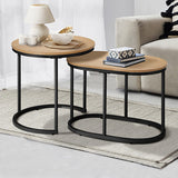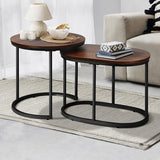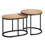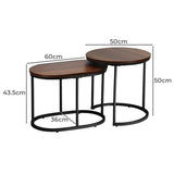 Features: Materials: particleboard with laminate finish tabletop, powder-coated iron frame, steel assembly hardware Includes: 1 x oval coffee table, 1 x round coffee table, 1 x hardware pack, 1 x assembly manual, 1 x set of foot pads Two in one coffee table for even more space for entertaining or simply doubling the useable area The tabletops are made from durable particleboard with a laminate finish for protection against wear and tear Circular metal tube bases Heavy-duty steel fixings and meticulous artisanship for a flawless finish The surfaces are anti-scratch, easy to clean and maintain Anti-slip foot pads on each table to ensure they stay rooted to the spot Highly versatile furniture set to enjoy in the living room Assembly is a breeze with its easy-to-follow manual Sturdy powder-coated metal tube base Smooth and safe rounded edges