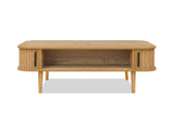 Product Code: 840930001 The Nelson Coffee Table combines modern elegance with everyday functionality. Available in Oak and Walnut finishes, it showcases curved edges, panelled sliding doors, and contrast black handles for a sophisticated touch. Solid rubberwood legs provide reliable support, while the sliding doors offer discreet storage to keep your space tidy. With its refined design and practical features, the Nelson Coffee Table is a stylish and versatile addition to any living area. Ready To Assemble This product comes ready to assemble.