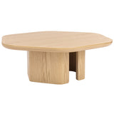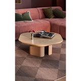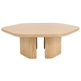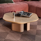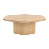 Features: Materials: MDF with oak veneer finish tabletop and base Includes: 1 x coffee table, 1 x assembly manual Oak veneer is known for its strength and resilience, ensuring that the coffee table is sturdy and long-lasting Consider pairing it with a complementary side table for a cohesive look in your home Showcases gently curved edges that enhance safety while also creating a refined aesthetic The table is supported by a split-pillar base, offering both stability and a unique visual element that complements the hexagonal design Exclusive Australian-designed piece by our Temple & Webster in-house design team Base frame thickness: 2.5cm
