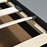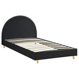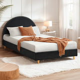 Features: Materials: pine wood frame and legs, polyester bouclé upholstery Includes: 1 x bed frame, 1 x assembly manual