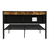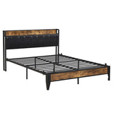 Features: Materials: black powder-coated steel frame & slats, MDF board with melamine surface, PU leather upholstery, foam padding Includes: 1 x bed frame, 1 x assembly manual, 1 x hardware pack Practical design & strong support bed frame A retro-style bed frame that looks classic & elegant, it is easy to match your room perfectly With a one-tier storage headboard to hold small items such as phones, glasses, & decorations High-quality, sturdy, waterproof & scratch-resistant MDF board The headboard also comes with PU leather & foam padding Black metal support feet Heavy-duty metal connectors Steel slats prevent sagging, it is strong enough & can provide your mattress with a load-bearing capacity of 240kg With a charging station, the built-in power strip on the headboard has two outlets, one USB port & one Type C port Easy to assemble & everything is included in the package; no additional tools are required
