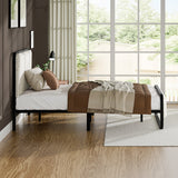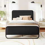 Features: Materials: steel frame and legs, PU leather upholstery, high-density foam padding, plywood slats, rubber foot pads Includes: 1 x bed frame, 1 x set of assembly hardware, 1 x assembly manual Industrial-modern style bed with two-toned finish U-shaped headboard and footboard for ultra stability Comfort-enhancing, high-density foam padding X-support metal frame ensures superior strength Three reinforced central tube legs for added support Ventilated design allows for free air circulation and prevents heat retention and smell Non-slip rubber padding for added floor protection