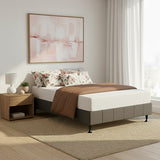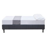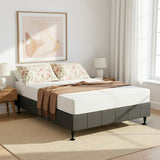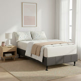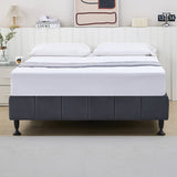 Features: Materials: polyester velvet upholstery, MDF and steel frame, foam padding, plywood slats, polypropylene legs Includes: 1 x bed base, 1 x assembly manual Designed with both aesthetics and practicality in mind Elevates your bedroom experience with the perfect blend of comfort, style, and convenience Upholstered in luxurious dark grey velvet that adds elegance to your space Its soft texture not only enhances the visual appeal but also invites you to sink into its plush embrace at the end of a long day Provides a solid foundation for your mattress, ensuring a restful night’s sleep Assembly is a breeze, allowing to set up this centrepiece in just minutes Complements a variety of interior styles, from contemporary to classic