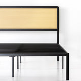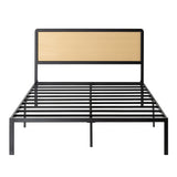 Features: Materials: powder-coated steel frame & legs, rattan & MDF bedhead Includes: 1 x bed frame, 1 x assembly manual, 1 x assembly kit Strong & sturdy steel structure The rattan bedhead adds sophistication to the design Suits any room décor