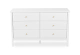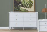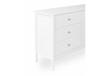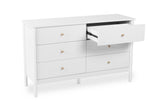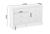 Product Code: 794200001 Introducing the Rowland White Dresser, an online exclusive that effortlessly blends style and quality. With its captivating White finish, this dresser adds a touch of modern sophistication to your space. Featuring a contemporary clean look and six spacious drawers, it offers generous storage capacity. The Timber Look finish and solid wooden legs seamlessly complement your decor. Boasting an impressive 90kg overall weight limit and 8kg per drawer, it's a lasting investment. Upgrade your space with the Rowland White Dresser, where exclusivity meets elegance. Make it yours today and experience style and quality in a compact and convenient package. Your search for the perfect dresser ends here! Click here to view Furniture Safety Information Ready To Assemble This product comes ready to assemble. WARNING! Children have died from furniture toppling over. Always secure this furniture with an anchor device. Never allow children to stand, climb or hang on drawers, doors, or shelves. Never open more than one drawer at a time. Always place heavy items down low. Never place a television on any furniture other than an entertainment unit. For entertainment units, always secure your television with an anchor device. For more information, visit Home | ACCC Product Safety or click here to view furniture safety information.