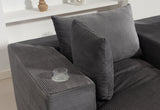 Meet the LECCE L-shaped chaise lounge sofa - your new go-to for stretch-out comfort and laid-back living. Upholstered in soft, corduroy-style fabric, it features deep seating, wide armrests with built-in cup holders, and a roomy chaise that’s perfect for relaxing. The plush cushions, including large back pillows and square side cushions, add extra coziness to every corner. Whether you're lounging with a book or hosting movie night, LECCE brings comfort and charm to your space. A stylish and functional centrepiece for any lounge. Allow approx. 72 hrs for the set to fully expand after unboxing.