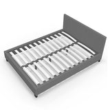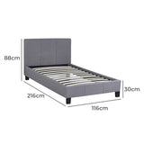 Features: Materials: rubberwood & steel frame, rubberwood legs, plywood slats, polyester upholstery, high density foam padding Includes: 1 x bed frame, 1 x headboard, 1 x assembly manual, 1 x set of assembly parts & screws Simple contemporary style Made of high-quality, breathable fabric & high density foam padding 12 x strategically placed slats with centre support rails Upholstery adds another layer of comfort Arrives flat packed with assembly instructions included Floor protectors for convenience