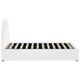Features: Materials: plywood frame, metal, gas lift frame, 100% polyester faux leather upholstery, high-density foam padding, ABS plastic legs, plywood & metal slats Includes: 1 x bed, 1 x assembly manual Arched design Epitome of luxury that harmoniously fuses opulence & practicality Sumptuous faux fabric provides visual appeal & a soft, comforting vibe to the bedroom Spacious under-bed storage compartment Clean lines & sleek silhouette effortlessly complements diverse interior design themes Crafted with precision & robust support & durability Gas lift mechanism operates smoothly, creating a reliable foundation Easy assembly Effortless maintenance & cleaning For the gas lift bed to operate, a mattress must first be placed on the bed as the weight acts as a controllable trigger