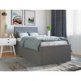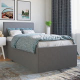 Features: Fabric: grey linen Size: king single Note: bed frame only, mattresses not included Flat packed, assembly instruction manual is included Size: King Single Upholstery Material Details: Linen