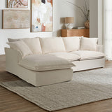 CREAM SOFTY PREMIUM 3 SEATER SLIPCOVER SOFA WITH CHAISE