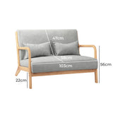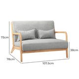 Features Type: Sofa Primary Colour: Light Grey Comfort Level: Medium Shape: Standard Sofa Frame Material: Solid WoodFrame Material Details: Rubberwood Legs Material: Solid WoodLegs Material Details: Rubberwood Upholstery Material: FabricUpholstery Material Details: 100% polyester Seat Padding Material: High-density foam Back Padding Material: High-density foam Armless: No Cushions Included: Yes Seat Cushion(s) Removable: No Back Cushion(s) Removable: No Seating Capacity: 2 Foot Pads Included: YesFoot Pads Type: Screw-on felt pads Back Type: Cushion Back Style: Mid Century; Scandinavian Pattern: Solid Box Contents: 1 x 2-seater sofa, 2 x cushions Outdoor Use: Yes Care Instructions: Wipe with a clean, dry cloth; do not use strong liquid cleaners  Assembly Assembly Required: YesType of Assembly: MinimalRecommended Persons Required for Assembly: 1Assembly Details: Screw on legs & back  Limited warranty Product Warranty: 1 Year  StyleThe Adeare 2 Seater Sofa is a Mid Century or Scandinavian style product. Scandinavian style is exemplified by clean-lines, simple, and functional. Scandinavian interiors feature bright white on floors, fabrics, and walls.While, unpainted, light wood furniture that embraces the natural grain adds much-needed warmth to spaces. Sleek, utilitarian furniture without much embellishmentis a mainstay in this minimalist style with a modern flair. You can shop for more Mid Century or Scandinavian Sofas & Lounge Sets in the Furniture section of our site.
