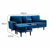 STOCKHOLM VELVET REVERSIBLE CHAISE SOFA