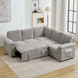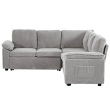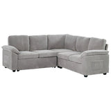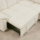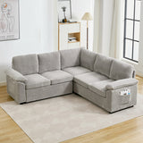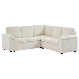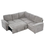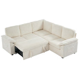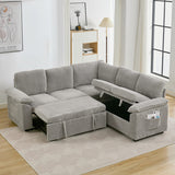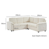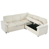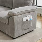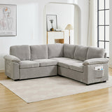 Features: Materials: plywood and steel frame, 100% polyester corduroy upholstery, high-density foam seat and back padding, pocket coil springs seat suspension, high-density polyethylene (HDPE) legs, hard plastic foot pads Includes: 1 x sofa bed, 1 x assembly manual Functions as a stylish sectional by day and effortlessly converts into a cosy pull-out bed by night Built-in storage under a single seat, perfect for keeping blankets, pillows, and essentials Can be rearranged, allowing you to customise the layout to perfectly suit your room's size, shape, and style Soft, ribbed corduroy that provides a warm, hides minor imperfections, and stands up to daily wear Designed for quick, tool-free setup so you can enjoy your new sectional sleeper sofa bed without hassle or frustration