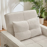 Features: Materials: powder-coated steel and plywood frame, 100% polypropylene legs, 100% polyester chenille upholstery, high-density foam padding, S-springs seat suspension Includes: 1 x sofa bed, 1 x throw cushion, 1 x assembly manual Comes with a pull-out mechanism that easily converts into a chaise lounge or a single bed, giving maximum living flexibility and space-saving features Suitable for a variety of locations including apartments, dorm rooms, studios, and home theatres Two side pockets are designed for extra storage space Showcases 3-position adjustable backrest that allows for different angles when sitting, reclining, or sleeping Smooth-gliding wheels allow for easy, single-motion footrest extension Built with a sturdy, rust-proof steel frame that can hold up to 120kg, giving you strong support Upholstered in a soft, breathable chenille fabric that stays cool and resists piling for cosy comfort Comes with detailed instructions, with each part clearly numbered for simple assembly We recommend fluffing cushions daily to maintain their shape, to ensure longer life, and to create a fuller and more plump appearance