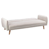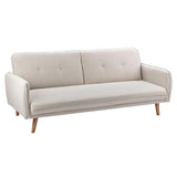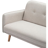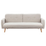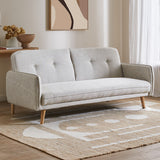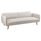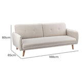 Features Size: Single Bed Type: Click Clack Sofa Bed Mattress Type: Inner Spring Mattress; Foam Mattress Consumer Advice: We strongly recommend using suitable floor protection to prevent damage to hard surface floors (e.g. a non-slip rug or non-slip furniture feet protectors). Regular checks to ensure that fixings are tight and the supporting legs remain securely in place is also required. Frame Material: Manufactured WoodFrame Material Details: Plywood Primary Colour: Cream Legs Included: YesLegs Material: Rubberwood Upholstery Material: Polyester Seat Padding Material: Medium-density foam Back Padding Material: Medium-density foam Seat Suspension Type: SpringsSuspension Details: Bonnell springs Seat Cushion(s) Removable: No Back Cushion(s) Removable: No Removable Cushion Cover: No Machine Washable Cushion Cover: No Trundle Included: No Seating Capacity: 3 Comfort Level: Firm Recommended Weight Capacity: 360 Kilograms Foot Pads Included: YesFoot Pads Type: Plastic Arms Included: Yes Style: Mid Century; Scandinavian Box Contents: 1 x sofa bed, 1 x set of assembly parts, 1 x assembly manual Care Instructions: Spot clean only Assembly Assembly Required: YesType of Assembly: MinimalRecommended Persons Required for Assembly: 2Assembly Details: Assembly instructions included with the product Limited warranty Product Warranty: 3 Years StyleThe Chelsea 3 Seater Sofa Bed is a Mid Century or Scandinavian style product. Scandinavian style is exemplified by clean-lines, simple, and functional. Scandinavian interiors feature bright white on floors, fabrics, and walls.While, unpainted, light wood furniture that embraces the natural grain adds much-needed warmth to spaces. Sleek, utilitarian furniture without much embellishmentis a mainstay in this minimalist style with a modern flair.