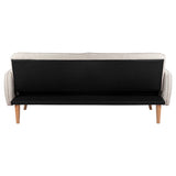 Features: Materials: rubberwood legs, plywood frame, polyester upholstery, Bonnell springs, medium-density foam padding Includes: 1 x sofa bed, 1 x set of assembly parts, 1 x assembly manual Click-clack mechanism allows you to quickly & easily convert it into a comfy bed Great space-saving size for apartments or spare rooms Narrow armrests make room for more generous seating space Its splayed, tapered legs give it modern flair Its upholstery is complete with piping trims for extra durability