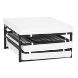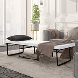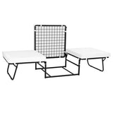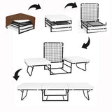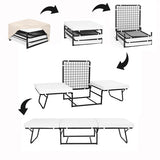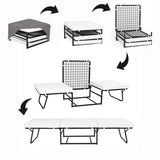 Features: Materials: polyester ottoman slipcover, foam mattress, cotton mattress cover, black steel frame Includes: 1 x frame, 3 x mattress, 3 x mattress covers, 1 x ottoman slipcover 7cm foam mattress with extra thick covers Removable & machine washable ottoman & mattress covers Versatile & space saving Can be use as a footrest, ottoman, coffee table or single bed Stylish, linen-look polyester ottoman slipcover Sturdy, steel frame with floor protectors Gravity keys to keep legs securely locked for the safety Ottoman dimensions: H40 x W70 x D70cm