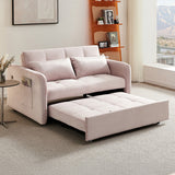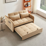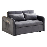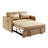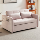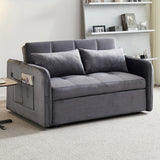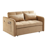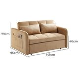 Features: Materials: plywood and powder-coated steel frame, polypropylene legs and webbing, polyester velvet upholstery, foam padding Includes: 1 x sofa bed, 2 x cushions, 1 x assembly manual Easily transforms from a sofa to a twin-size bed with a convenient pull-out mechanism Perfect for small spaces Customise your seating position for optimal comfort Convenient USB ports on the armrest for charging your devices Luxuriously soft fabric adds comfort and elegance to your home Comes with two cushions for extra comfort and support for a cosy lounging experience We recommend fluffing cushions daily to maintain their shape, to ensure longer life, & to create a fuller & more plump appearance