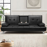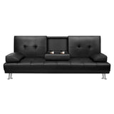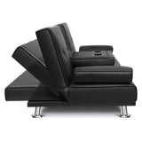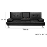 Features: Materials: plywood frame, PU leather upholstery, high-density foam padding, steel springs seat suspension, chrome steel legs, plastic foot pads Includes: 1 x sofa bed, 1 x assembly manual Functions as both a two-seater sofa and a bed, ideal for compact living areas Click-clack mechanism allows backrest angles of 105°, 140°, and 180° to suit various lounging needs Covered in high-quality PU leather with plush, high-resilience foam padding for extra comfort Offers a stylish, seamless design and enhanced durability compared to separated seat structures Supported by four chrome-plated steel legs with a weight capacity of up to 200kg Comes with built-in platform with cup holders provides space for drinks and snacks It has two detachable armrests that double as pillows for versatile use