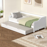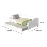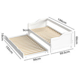 Features Size: Single Frame Material: Solid WoodFrame Material Details: Pine wood Primary Colour: White Legs Included: YesLegs Material: Pine wood Mattress Included: No Trundle Included: Yes Recommended Weight Capacity: 150 Kilograms Style: Traditional; Country: Coastal Box Contents: 1 x daybed frame with trundle, 1 x assembly manual Care Instructions: Do not use strong cleaners or chemicals Assembly Assembly Required: YesType of Assembly: FullRecommended Persons Required for Assembly: 2Assembly Details: Assembly instructions included with the product  Limited warranty Product Warranty: 1 Year  StyleThe Nadine Single Daybed with Trundle is a Traditional or Country: Coastal style product. Traditional style furniture and decor tends to look heavy with an heirloom type quality.Common wood tones are darker shades of mahogany and walnut. Traditional style tends to feature pieces with tufted cushions and nailhead accents. You can shop for more Traditional or Country: Coastal Sofa Beds in the Furniture section of our site.