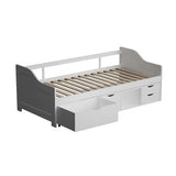 Features: Materials: pine wood with painted finish frame and drawers, pine wood slats Includes: 1 x daybed with storage, 1 x set of assembly parts, 1 x assembly manual Stylish, space-saving and contemporary design With five spacious storage drawers Solid pine wood construction with premium pinewood slats The extended drying process of the frame guarantees long-lasting quality 100% formaldehyde-free and coated in non-toxic paint Sturdy and stable construction