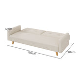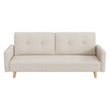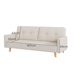 Features Size: Single Bed Type: Fold Out Sofa Bed Mattress Type: Foam Mattress Frame Material: Solid WoodFrame Material Details: Eucalyptus wood Primary Colour: Beige Legs Included: YesLegs Material: Rubberwood Upholstery Material: PolyesterUpholstery Material Details: Polyester linen Seat Padding Material: High-resilience sponge Back Padding Material: High-resilience sponge Mattress Included: No Seat Suspension Type: SpringsSuspension Details: S-spring Seat Cushion(s) Removable: No Back Cushion(s) Removable: No Removable Cushion Cover: No Machine Washable Cushion Cover: No Trundle Included: No Seating Capacity: 3 Comfort Level: Medium Recommended Weight Capacity: 250 Kilograms Arms Included: Yes Style: Mid Century; Scandinavian Pattern: Solid Box Contents: 1 x sofa bed, 1 x set of screws, 1 x L-type hexagon wrench, 1 x assembly manual Care Instructions: Wipe clean with a dry cloth Assembly Assembly Required: YesType of Assembly: MinimalRecommended Persons Required for Assembly: 2Assembly Details: Assembly instructions included with product Limited warranty Product Warranty: 2 Years StyleThe Dorthy 3 Seater Single Sofa Bed is a Mid Century or Scandinavian style product. Scandinavian style is exemplified by clean-lines, simple, and functional. Scandinavian interiors feature bright white on floors, fabrics, and walls.While, unpainted, light wood furniture that embraces the natural grain adds much-needed warmth to spaces. Sleek, utilitarian furniture without much embellishmentis a mainstay in this minimalist style with a modern flair.