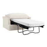 Features Size: Single Bed Type: Fold Out Sofa Bed Mattress Type: Inner Spring Mattress Consumer Advice: We strongly recommend using suitable floor protection to prevent damage to hard surface floors (e.g. a non-slip rug or non-slip furniture feet protectors). Regular checks to ensure that fixings are tight and the supporting legs remain securely in place is also required. Frame Material: Solid Wood; Manufactured Wood; MetalFrame Material Details: Rubberwood, plywood, steel Primary Colour: Cream Legs Included: YesLegs Material: Rubberwood Upholstery Material: Polyester; LinenUpholstery Material Details: 74% polyester, 24.6% viscose, 1.4% linen Seat Padding Material: High-density foam Back Padding Material: High-density foam Mattress Included: YesMattress Material Details: Cotton quilted fabric cover, cotton felt, glue-free breathable cotton, stainless steel springs, 4.2cm edge bandMattress Detachable: Yes Seat Cushion(s) Removable: Yes Back Cushion(s) Removable: Yes Removable Cushion Cover: Yes Machine Washable Cushion Cover: No Comfort Level: Soft to Medium Recommended Weight Capacity: 120 Kilograms Foot Pads Included: YesFoot Pads Type: Hard plastic Additional Floor Protectors Advised for Wooden Floors: No Arms Included: Yes Pattern: Solid Box Contents: 1 x sofa bed with mattress, 1 x seat cushion, 1 x back cushion, 2 x throw cushions, 1 x assembly manual Care Instructions: Re-tighten the sofa bed regularly; minimum 20-30cm distance from a heat source; do not place in direct sunlight Assembly Assembly Required: YesType of Assembly: FullRecommended Persons Required for Assembly: 2Assembly Details: Assembly instructions included with the product Limited warranty Product Warranty: 3 Years