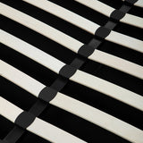 Features: Materials: plywood frame, painted finish steel central frame, polyester bouclé upholstery, rubberwood legs, PU foam padding, poplar wood slats Includes: 1 x bed, 1 x set of assembly parts, 1 x assembly manual The high bedhead adds elegance to the room and provides a supportive backrest when sitting up in bed Upholstered in tactile bouclé fabric for a cosy, textured look that adds warmth and dimension to your space The sturdy timber slats provide breathable, robust support for the mattress, ensuring long-lasting stability With its minimalist design, it complements both traditional and modern bedrooms The piped trims strengthen the upholstery while providing a tailored finish Consider optimising your storage with the space-saving hinged, gas-lift base, perfect for stowing away extra bedding or seasonal attire For the gas lift bed to operate, a mattress must first be placed on the bed as the weight acts as a controllable trigger