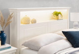 : Hamptons Style Detailing: Elevate your bedroom decor with the Kula Queen Bed's exquisite Hamptons style detailing, exuding a sense of coastal sophistication and refined luxury. Storage Shelf with LED Lighting: Delight in the innovative design of the bedhead, featuring a built-in storage shelf illuminated by LED lighting, adding a touch of ambient glow to your sleeping space while providing convenient storage for nighttime essentials. Ample Storage Compartments: Enhance organization and efficiency with two spacious storage compartments ingeniously integrated into the bedhead, offering additional space to stow away blankets, pillows, books, and more, ensuring a clutter-free environment. White Finish: Adorned in a pristine white finish, the Kula Queen Bed radiates a sense of purity and tranquility, infusing your bedroom with a light and airy ambiance that promotes relaxation and serenity. Ready to Assemble: Experience hassle-free setup with the Kula Queen Bed, delivered ready to assemble, allowing for effortless installation and immediate enjoyment of its stylish features. Revel in the serenity of coastal-inspired luxury and elevate your bedroom decor with the Kula Queen Bed, where style meets functionality in perfect harmony. Redefine your sleeping space with this exquisite piece, designed to enrich your everyday living experience with beauty and practicality. For added peace of mind, click here to view Furniture Safety Information. Ready To Assemble This product comes ready to assemble. Assembly Instructions To download assembly instructions for this product click here