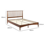 Features: Materials: washed pine wood frame & legs, steel leg support, plywood slats Includes: 1 x bed, 1 x set of hardware & assembly tools Beautiful European spindle headboard creates an elegant centrepiece in the bedroom Plywood slats increase air circulation to your mattress, prolonging its life Heavy-duty timber frame stays sturdy for many snoozes All hardware & easy-to-follow instructions included for straightforward assembly Steel support legs give it greater strength & stability Store seasonal clothes or other household items in the space underneath Distance between slats: 7.9cm Slats thickness: 0.9cm