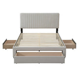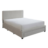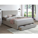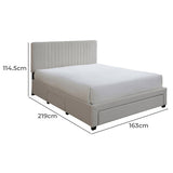 Features: Materials: MDF & particleboard frame, 100% polyester upholstery, rubberwood legs, foam padding, LVL slats, plastic castors Includes: 1 x bed, 1 x set of assembly parts, 1 x assembly manual Sturdy & durable Modern design Great addition to your bedroom Well-padded bedhead with an eye-catching vertical striped detailing Upholstered in premium polyester fabric 3 x spacious drawers with castors for easy move in & out Flat-packed for easy home assembly Underbed side drawer dimensions: H19.8 x W64.6 x D50cm Underbed footboard drawer dimensions: H19.8 x W137.3 x D50cm