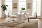 Product Code: 848510001 The Alderney Dining Table in white is where everyday dining meets refined elegance. Its cylindrical base, supported by three-columned legs with sleek pencil-line detailing, creates a sculptural look that’s as stylish as it is functional. Perfect for family meals, weekend brunches, or evening gatherings, its spacious top invites everyone to come together. Whether dressed with your favourite tableware or kept minimal, the Alderney sets the stage for meals that feel both relaxed and sophisticated. Ready To Assemble This product comes ready to assemble.