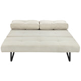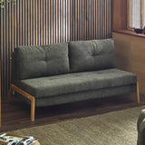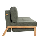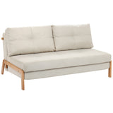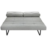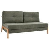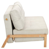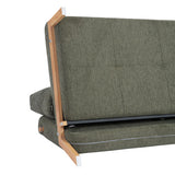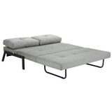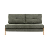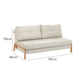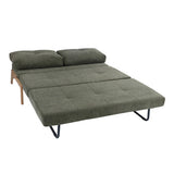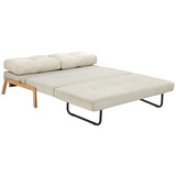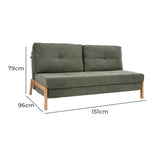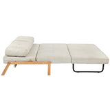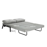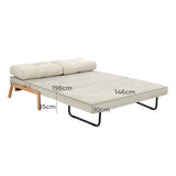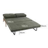 Features: Materials: 100% polyester upholstery, 100% steel frame, foam & polyester fibre filling, steel pipe legs, metal mesh seat suspension Includes: 1 x sofa bed, 2 x removable back cushions Generous firm padding for comfort Ideal in bedroom or living room & suits many interior styles Easy to unfold, making it a fuss-free transition from sofa to bed & back again Leg supports are concealed under the seat Grey with grey cushions & black frame Natural with natural cushions, wooden finish legs & natural frame