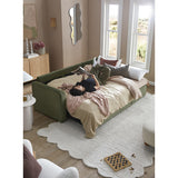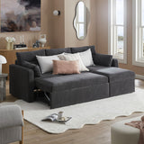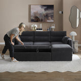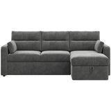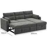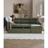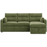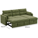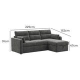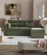 Features: Materials: plywood frame, 100% polyester corduroy upholstery, polypropylene & polyethylene plastic legs, high-density foam seat padding, polyester fibre back padding, no-sag springs & webbing seat suspension Includes: 1 x sofa bed, 1 x chaise, 2 x lumbar cushions, 1 x assembly manual Crafted by our in-house design team for a unique feel Functions as both a sofa with reversible chaise & a sofa bed, offering the utmost comfort Transforms from a sofa to a sofa bed in under a minute Ample storage under the chaise for bedding, toys, & more The contemporary rounded arms & corduroy fabric elevate your home's aesthetic Removable back cushions for convenience With two lumbar cushions Note: a chaise refers to a sofa with a chaise on either left or right as you see it on the screen, not as you would be sitting on it We recommend fluffing cushions daily to maintain their shape, to ensure longer life, & to create a fuller & more plump appearance
