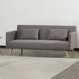 Features Size: Double Bed Type: Click Clack Sofa Bed Mattress Type: Foam Mattress Frame Material: Solid WoodFrame Material Details: Beech wood Legs Included: YesLegs Material: Beech wood Upholstery Material: Polyester Seat Padding Material: High-density foam Back Padding Material: High-density foam Seat Suspension Type: Webbing Cushions Included: Yes Seating Capacity: 3 Comfort Level: Medium to Firm Recommended Weight Capacity: 360 Kilograms Foot Pads Included: YesFoot Pads Type: Screw-on felt pads Arms Included: Yes Style: MidCentury; Scandinavian Pattern: Solid Box Contents: 1 x sofa bed, 2 x cushions Care Instructions: Wipe clean with a dry cloth Assembly Assembly Required: YesType of Assembly: MinimalRecommended Persons Required for Assembly: 1Assembly Details: Screw on legs only Limited warranty Product Warranty: 1 Year StyleThe Lawrence 3 Seater Sofa Bed is a MidCentury or Scandinavian style product. Scandinavian style is exemplified by clean-lines, simple, and functional. Scandinavian interiors feature bright white on floors, fabrics, and walls.While, unpainted, light wood furniture that embraces the natural grain adds much-needed warmth to spaces. Sleek, utilitarian furniture without much embellishmentis a mainstay in this minimalist style with a modern flair. You can shop for more MidCentury or Scandinavian Sofa Beds in the Furniture section of our site.