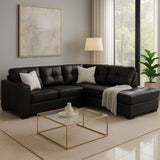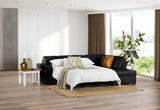 DIAMOND LEATHER-LOOK CORNER RIGHT-HAND FACING CHAISE WITH SOFA BED BLACK