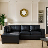 DIAMOND LEATHER-LOOK LEFT-HAND FACING CORNER CHAISE WITH SOFA BED BLACK