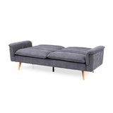 Features Size: Double Bed Type: Click Clack Sofa Bed Mattress Type: Inner Spring Mattress Consumer Advice: We strongly recommend using suitable floor protection to prevent damage to hard surface floors (e.g. a non-slip rug or non-slip furniture feet protectors). Regular checks to ensure that fixings are tight and the supporting legs remain securely in place is also required. Frame Material: Solid WoodFrame Material Details: Rubber wood Legs Included: YesLegs Material: Rubber wood Upholstery Material: Faux LeatherUpholstery Material Details: Suede fabric Seat Padding Material: High density foam Back Padding Material: High density foam Mattress Included: Yes Seat Suspension Type: Springs Seating Capacity: 3 Comfort Level: Medium Style: MidCentury; Scandinavian Box Contents: 1 x sofa bed Care Instructions: Do not use strong liquid cleaners Assembly Assembly Required: Yes Limited warranty Product Warranty: 1 Year StyleThe Emma Sofa Bed is a MidCentury or Scandinavian style product. Scandinavian style is exemplified by clean-lines, simple, and functional. Scandinavian interiors feature bright white on floors, fabrics, and walls.While, unpainted, light wood furniture that embraces the natural grain adds much-needed warmth to spaces. Sleek, utilitarian furniture without much embellishmentis a mainstay in this minimalist style with a modern flair. You can shop for more MidCentury or Scandinavian Sofa Beds in the Furniture section of our site.