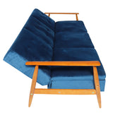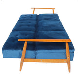 Features Size: Double Bed Type: Click Clack Sofa Bed Mattress Type: Inner Spring Mattress Consumer Advice: We strongly recommend using suitable floor protection to prevent damage to hard surface floors (e.g. a non-slip rug or non-slip furniture feet protectors). Regular checks to ensure that fixings are tight and the supporting legs remain securely in place is also required. Frame Material: Solid WoodFrame Material Details: Rubber wood Legs Included: YesLegs Material: Rubber wood Upholstery Material: PolyesterUpholstery Texture: VelvetUpholstery Material Details: Polyester Velvet fabric Seat Padding Material: High density foam Back Padding Material: High density foam Mattress Included: Yes Seat Suspension Type: Springs Seating Capacity: 3 Comfort Level: Medium Style: MidCentury; Scandinavian; Luxe Box Contents: 1 x sofa bed Care Instructions: Do not use strong liquid cleaners Primary Colour (Green Velvet Colour): Green Primary Colour (Grey Velvet Colour): Light Grey Primary Colour (Blue Velvet Colour): Blue Assembly Assembly Required: Yes Limited warranty Product Warranty: 1 Year StyleThe Linda Sofa Bed is a MidCentury or Scandinavian style product. Scandinavian style is exemplified by clean-lines, simple, and functional. Scandinavian interiors feature bright white on floors, fabrics, and walls.While, unpainted, light wood furniture that embraces the natural grain adds much-needed warmth to spaces. Sleek, utilitarian furniture without much embellishmentis a mainstay in this minimalist style with a modern flair. You can shop for more MidCentury or Scandinavian Sofa Beds in the Furniture section of our site.