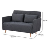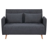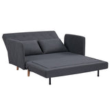 Features Size: Double Bed Type: Fold Out Sofa Bed Mattress Type: Foam Mattress Consumer Advice: We strongly recommend using suitable floor protection to prevent damage to hard surface floors (e.g. a non-slip rug or non-slip furniture feet protectors). Regular checks to ensure that fixings are tight and the supporting legs remain securely in place is also required. Frame Material: Solid WoodFrame Material Details: Pine wood Primary Colour: Black Legs Included: YesLegs Material: Pine wood, powder-coated steel Upholstery Material: PolyesterUpholstery Material Details: 100% polyester Seat Padding Material: High-density foam Back Padding Material: High-density foam Mattress Included: No Seat Suspension Type: Springs Cushions Included: Yes Seating Capacity: 2 Comfort Level: Medium Recommended Weight Capacity: 240 Kilograms Foot Pads Included: YesFoot Pads Type: Felt pads Style: MidCentury; Scandinavian Pattern: Solid Box Contents: 1 x sofa bed, 2 x pillows Care Instructions: Wipe with a clean, dry cloth Assembly Assembly Required: YesType of Assembly: MinimalRecommended Persons Required for Assembly: 1Assembly Details: Screw on legs only Limited warranty Product Warranty: 1 Year StyleThe Charcoal Liam 2 Seater Sofa Bed is a MidCentury or Scandinavian style product. Scandinavian style is exemplified by clean-lines, simple, and functional. Scandinavian interiors feature bright white on floors, fabrics, and walls.While, unpainted, light wood furniture that embraces the natural grain adds much-needed warmth to spaces. Sleek, utilitarian furniture without much embellishmentis a mainstay in this minimalist style with a modern flair. You can shop for more MidCentury or Scandinavian Sofa Beds in the Furniture section of our site.