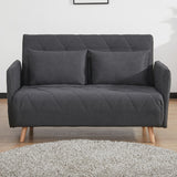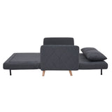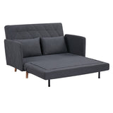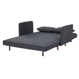 Features: Materials: pine wood frame, powder-coated steel & pine wood legs, 100% polyester upholstery & pillow cover, high-density foam padding & pillow fill Includes: 1 x sofa bed, 2 x pillows Its space-saving design squeezes right into apartments or smaller office areas Incredibly soft fabric upholstery Convert from sofa to bed instantly Backrest can be positioned at three different angles