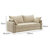 Features Size: Double Bed Type: Pull Out Sofa Bed Mattress Type: Foam Mattress Consumer Advice: We strongly recommend using suitable floor protection to prevent damage to hard surface floors (e.g. a non-slip rug or non-slip furniture feet protectors). Regular checks to ensure that fixings are tight and the supporting legs remain securely in place is also required. Frame Material: Manufactured WoodFrame Material Details: Plywood Legs Included: YesLegs Material: Polypropylene, polyethylene plastic Upholstery Material: PolyesterUpholstery Material Details: 100% polyester fabric Seat Padding Material: High-density foam Back Padding Material: Polyester fibre Mattress Included: No Seat Suspension Type: Webbing; SpringsSuspension Details: No-sag springs, webbing Seat Cushion(s) Removable: No Cushions Included: Yes Back Cushion(s) Removable: Yes Removable Cushion Cover: Yes Machine Washable Cushion Cover: No Seating Capacity: 3 Comfort Level: Medium Recommended Weight Capacity: 200 Kilograms Style: Contemporary Box Contents: 1 x sofa bed, 2 x throw cushions, 1 x assembly manual Care Instructions: Remember to re-tighten the sofa regularly; do not place it in direct sunlight; keep a minimum of 20-30cm distance from a heat source; to maintain the shape of the cushions, please shake the cushions to evenly disperse the filling; avoid pushing the furniture because of the stress it imposes on the legs; cleaning off stains from upholstery should be carried out with caution; stain removers should only be applied when the effect has been tested on a lesser visible area of the furniture; blotches can be avoided by rubbing the stain inwards in gentle circular strokes Assembly Assembly Required: YesType of Assembly: FullRecommended Persons Required for Assembly: 2Assembly Details: Assembly instructions included with the product Limited warranty Product Warranty: 3 Years StyleThe Sunday 3 Seater Double Sofa Bed is a Contemporary style product. Contemporary style bridges the gap between traditional and modern. Pieces feature simple and clean lines with smooth surfaces without any carving or adornment. You can shop for more Contemporary Sofa Beds in the Furniture section of our site.