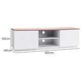 Features: Materials: MDF with UV painted finish frame & shelves, MDF with ash wood veneer finish tabletop Includes: 1 x entertainment unit, 1 x set of assembly parts, 1 x assembly manual Its soft & minimalist design adds a contemporary feel to your space Beautiful two-tone colour that works with most interior styles Offers plenty of storage space for your electronics Rounded corners for safety Open shelf dimensions (top shelf): H19.5. x W50 x D35cm Open shelf dimensions (bottom shelf): H17 x W50 x D35cm WARNING Children have died from furniture toppling over Always secure your television with an anchor deviceNever allow children to stand, climb or hang on drawers, doors, or shelves